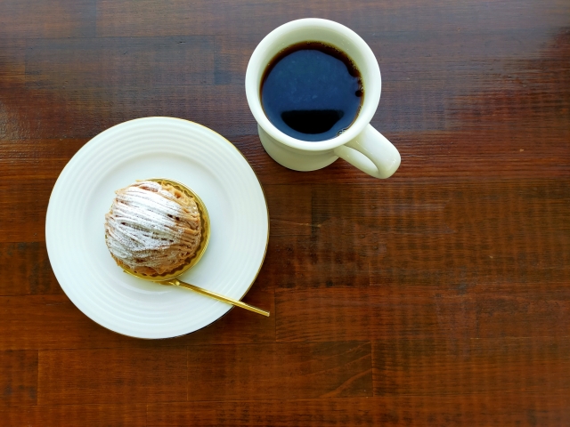大人のモンブラン…・モンブランケーキとブレンド珈琲・甘さを控えた大人なモンブランケーキと当店自慢のブレンド珈琲は、最上級大人時間♡
