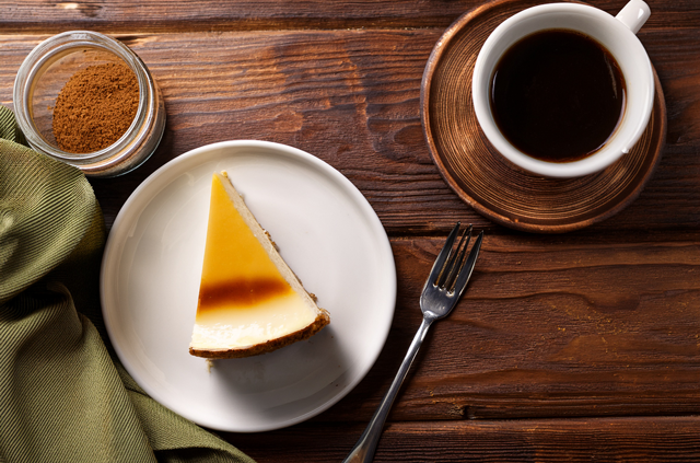 当店No.1人気!・クリームチーズケーキとブレンド珈琲・クリームチーズは北海道より取り寄せた逸品と当店自慢のブレンド珈琲は、贅沢なチルを味わえます